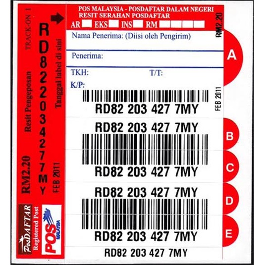 Pos Daftar Registered Post Track On Domestic Rd International Rr Label Shopee Malaysia